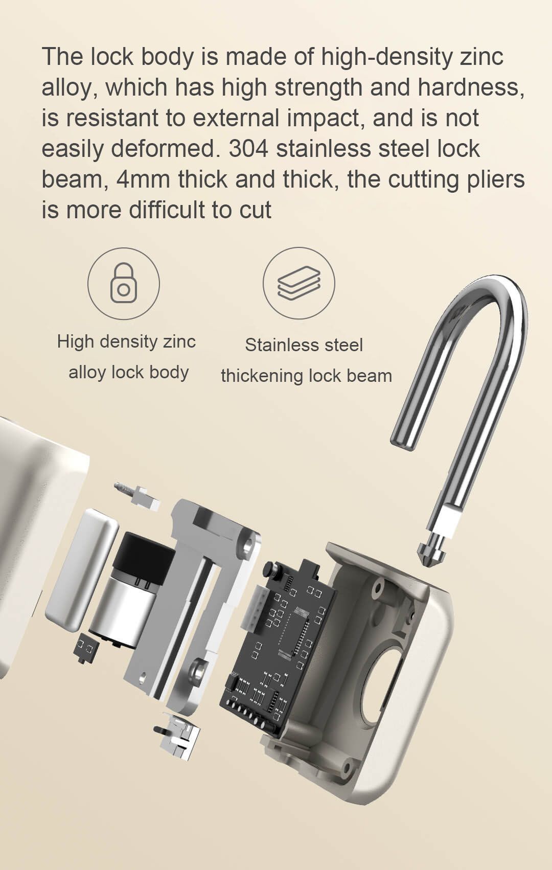 Bên cạnh công nghệ vân tay bảo mật thông minh thì, Ổ khóa Kitty cũng được đặc biệt trang bị kết cấu chắc chắn nhằm ngăn chặn trường hợp phá vỡ ổ khóa. Cụ thể thân khóa sử dụng chất liệu hợp kim kẽm mật độ cao, móc khóa bằng thép không gỉ 304 với độ dày 4mm nên sẽ rất khó phá vỡ hay dùng kìm cắt. Ngoài ra, ổ khóa còn được trang bị chuẩn IP22 nên sẽ cho khả năng chống nước, chống bụi tốt hơn tránh gỉ sét hay oxy hóa trong thời gian sử dụng lâu dài.