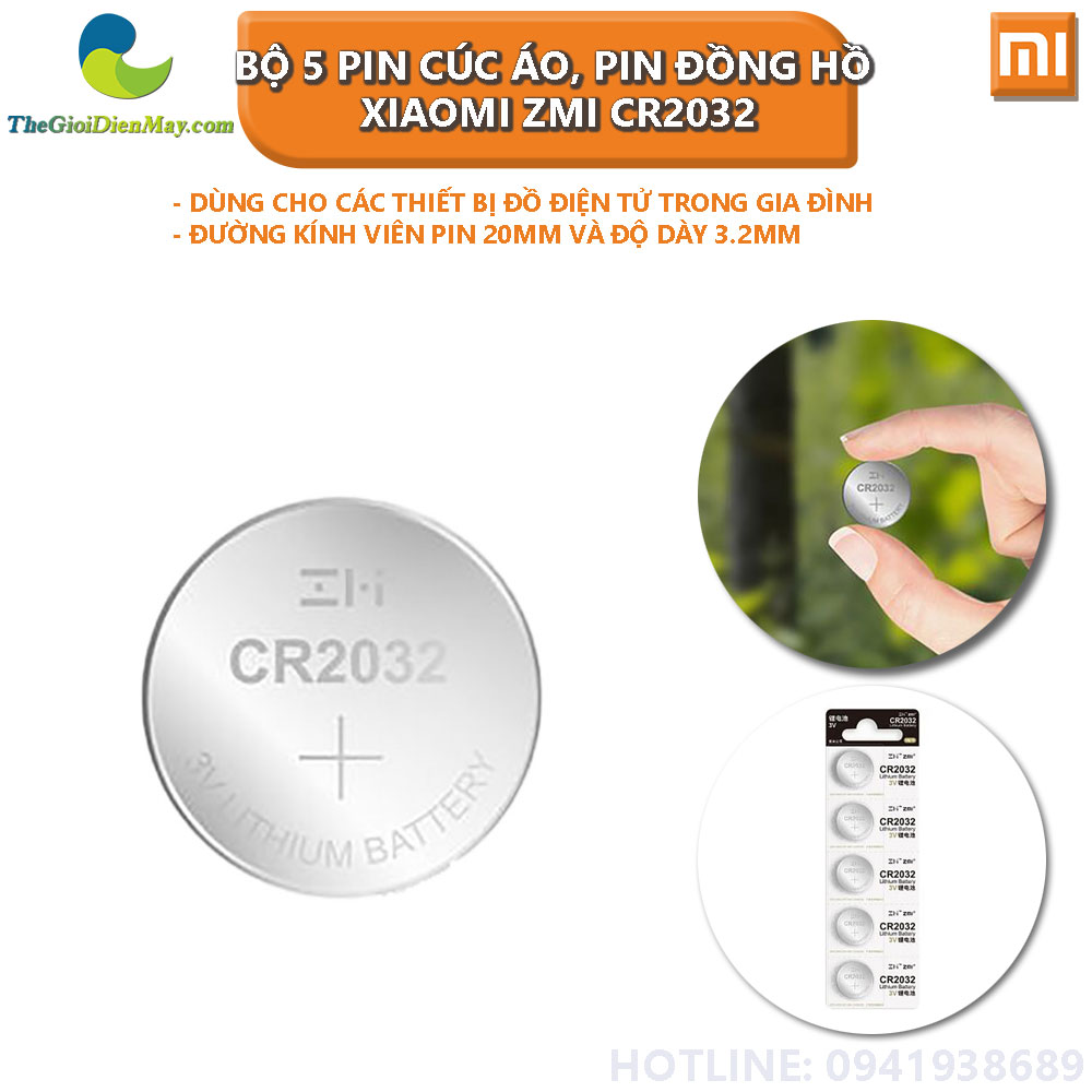 Pin CR2032 của ZMI là ký hiệu mang nghĩa đường kính viên pin là 20mm và pin có độ dày chỉ 3.2mm. Pin được đóng gói theo quy cách bộ 5 viên, có trọng lượng là 22g và kích thước đóng gói là 159 x 50 x 4.8 mm.
