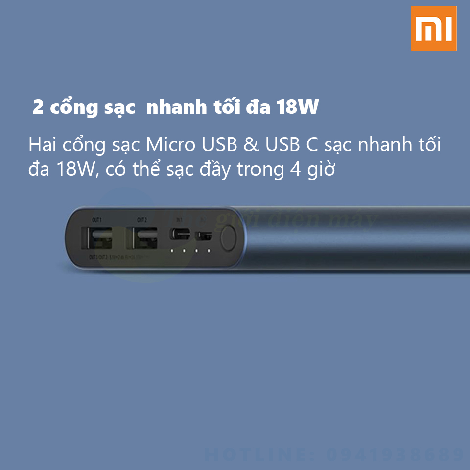 Các tín đồ nhà Xiaomi chắc có lẽ đã không còn quá xa lạ với các model pin sạc dự phòng chất lượng cao đến từ hãng. Và phiên bản Xiaomi gen 3 10000mAh 18W cũng không phải là một ngoại lệ khi sở hữu vẻ ngoài khá cao cấp, hỗ trợ 2 đầu vào/ra linh hoạt đặc biệt là khả năng sạc nhanh 2 chiều 18W với dung lượng 10000mAh. Đây hứa hẹn sẽ là phụ kiện trang bị đáng cân nhắc với người dùng sở hữu nhiều thiết bị sạc.