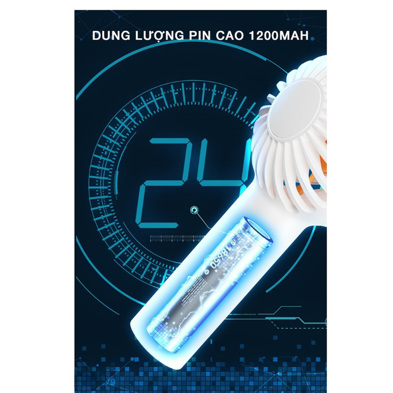 Về dung lượng pin, quạt cầm tay Qualitell được trang bị viên pin sạc dung lượng cao 1200mAh. Chỉ với 1 lần sạc qua cổng Type-C là bạn đã có thể sử dụng quạt cả ngày dài mà không cần phải sạc thường xuyên. Việc trang bị viên pin sạc tích điện thay vì cắm điện trực tiếp giúp chiếc quạt trở nên di động hơn, không chỉ thuận tiện hơn khi người dùng cần mang theo mọi lúc mọi nơi mà còn hỗ trợ làm mát kịp thời khi cúp điện.
