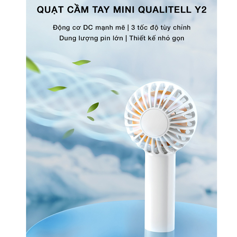 Quạt cầm tay mini Qualitell Y2 xua tan cái nóng nhanh chóng, tiện bỏ túi mang theo và sử dụng mọi lúc mọi nơi, có khối lượng siêu nhẹ chỉ 86g, kết cấu gọn gàng. Động cơ DC vận hành êm ái với độ ồn chỉ 53dB, 7 cánh quạt và 3 tốc độ gió cho phép bạn tùy chỉnh luồng gió phù hợp với nhu cầu. Pin 1200mAh cho thời gian sử dụng lâu dài. Qualitell Y2 luôn bền đẹp theo thời gian với chất liệu ABS, PP bền bỉ.