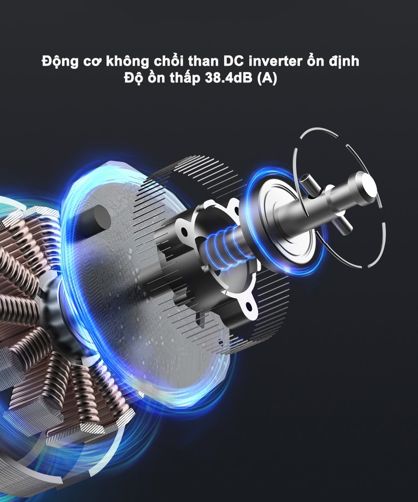 Quạt điều hòa nóng lạnh Xiaomi được sử dụng hệ thống động cơ không chổi than biến tần (DC inverter), mang đến khả năng làm việc ổn định, độ bền cao hơn không cần bảo trì thường xuyên và đặt biệt là khả năng tiết kiệm năng lượng vượt trội khi so với những loại động cơ chổi than thông thường. Tiếng ồn của quạt cũng được hạn chế ở mức thấp nhất, với 38.4dB (A), đam bảo không làm phiền đến người dùng, đặc biệt là vào ban đêm.