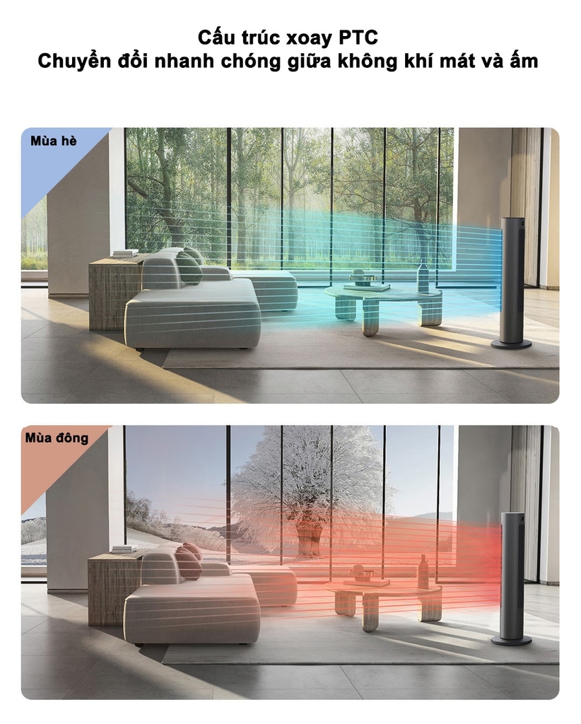 Khác với các thiết bị quạt tháp thông thường, Mijia BPLNS01DM là một chiếc quạt tháp được trang bị cấu trúc xoay PTC, thổi không khí ấm nóng khi đóng và không khí mát khi mở. Từ đó cho phép chiếc quạt có thể thực hiện cả 2 nhiệm vụ là sưởi ấm và làm mát, có thể sử dụng trong cả mùa đông và mùa hè. Đặc biệt, quạt còn được trang bị động cơ DC inverter thế hệ mới, êm ái và tiết kiệm năng lượng hơn, không gây ảnh hưởng nhất là giấc ngủ vào ban đêm và an toàn với trẻ nhỏ.