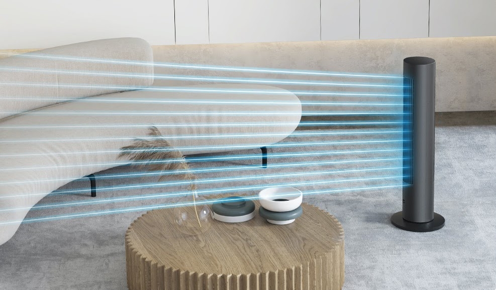 Ống dẫn khí được thiết kế xoáy cùng kích thước siêu dài tạo ra sức gió mạnh đến 357m³/h, sẽ cung cấp làn gió mát mẻ, dễ chịu cho người dùng và làm thông thoáng không gian trong nhà. Ngoài ra, cấu trúc PTC của quạt còn giúp mở rộng khoảng cách làm mát lên đến 10m, tạo không khí mát bao trùm khắp căn nhà.
