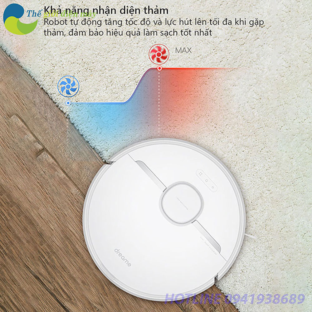 Thêm nữa với Robot Hút Bụi Lau Nhà thông minh Xiaomi Dreame D9 bạn sẽ hoàn toàn ngạc nhiên với khả năng nhận diện thảm, chức năng mà chỉ có ở những phiên bản robot cao cấp. Dreame D9 tự tăng lực hút lên tối đa ngay khi gặp thảm, các hạt bụi mịn rất dễ bám và bám lâu rồi sen kẽ giữa các sợi thảm. Giúp cho việc vệ sinh thảm hiệu quả hơn.
