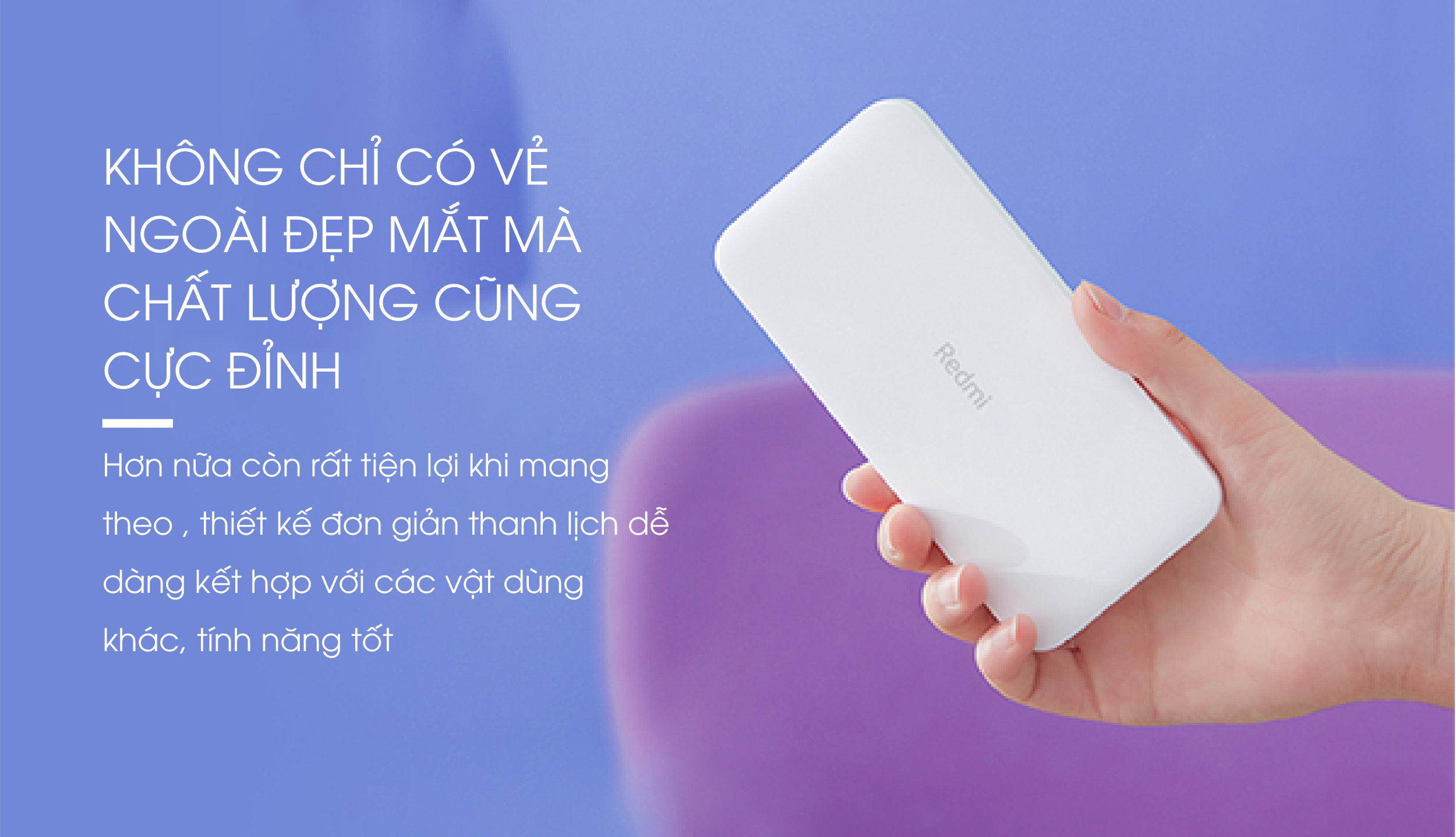 Bạn đang tìm kiếm một chiếc pin sạc dự phòng có ngoại hình đẹp và dung lượng sạc lớn thì bạn không nên bỏ qua Pin sạc dự phòng 10000mAh Redmi PB100LZM.