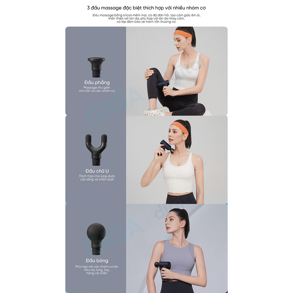 Bên cạnh đó, bạn có thể tham khảo thêm súng Massage YUNMAI Gun Extra Mini được trang bị 4 đầu massage chuyên dụng với thường lượng pin dài hơn lên đến 48 ngày sử dụng.