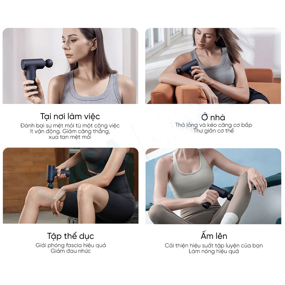 Máy massage cầm tay Xiaomi Gun Mini có thiết kế nhỏ gọn và cầm tay có thể đóng gói và mang đi bất cứ đâu. Bạn có thể sử dụng tại nơi làm việc để đánh bay sự mệt mỏi của công việc, giảm căng thẳng, xua tan mệt mỏi hay ở nhà để hỗ trợ thả lỏng và kéo căng cơ bắp, thư giãn cơ thể. Thậm chí bạn có thể sử dụng ngay tại nơi tập thể dục để giải phóng fascia hiệu quả, giảm đau nhức cải thiện hiệu suất tập luyện.