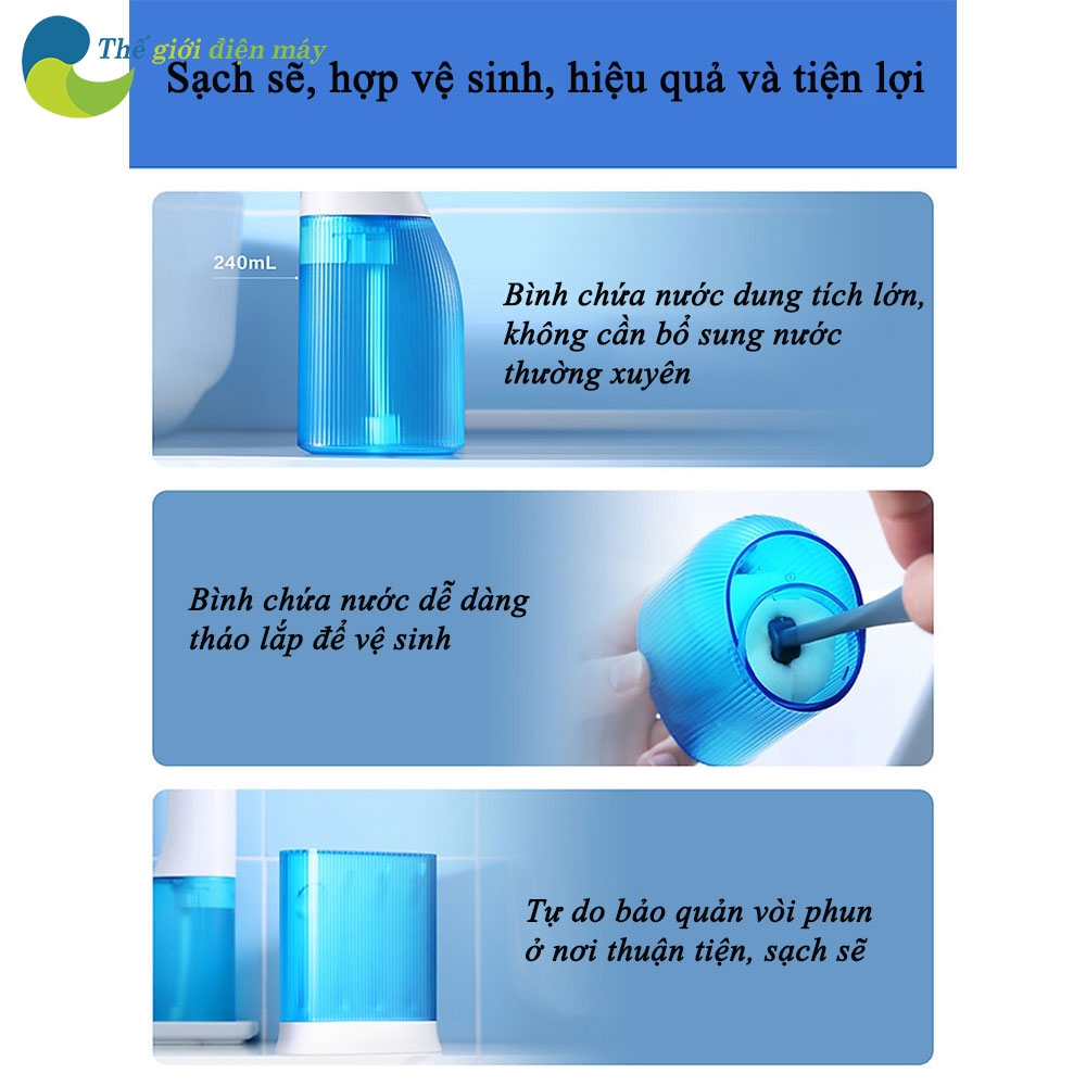 -Chỉ sử dụng NƯỚC TINH KHIẾT. Trường hợp dùng nước lẫn tạp chất (nước muỗi, nước súc miệng, ...) sẽ gây tắc ống dẫn nước hoặc phun yếu, gây hư hỏng không thể khắc phục