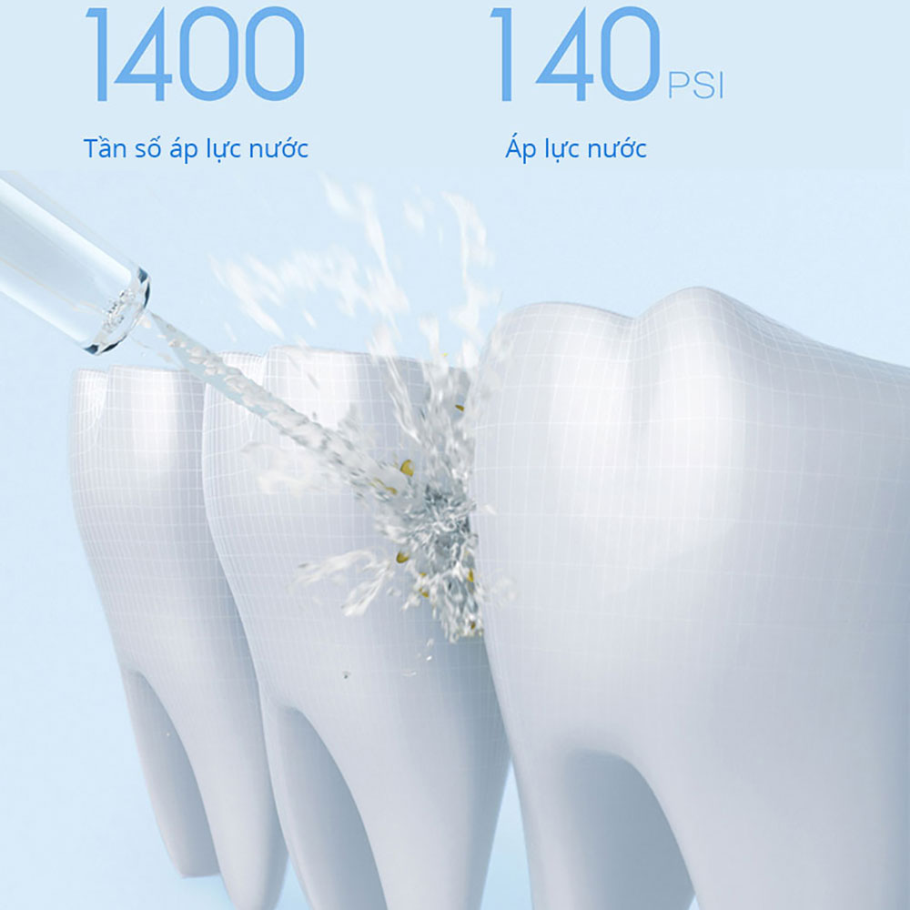- Được trang bị một bàn chải carbon mới, động cơ nam châm vĩnh cửu thông minh với áp lực nước lên đến 140PSl, có thể tạo ra một cột nước xung tần số cao 1400 lần / phút