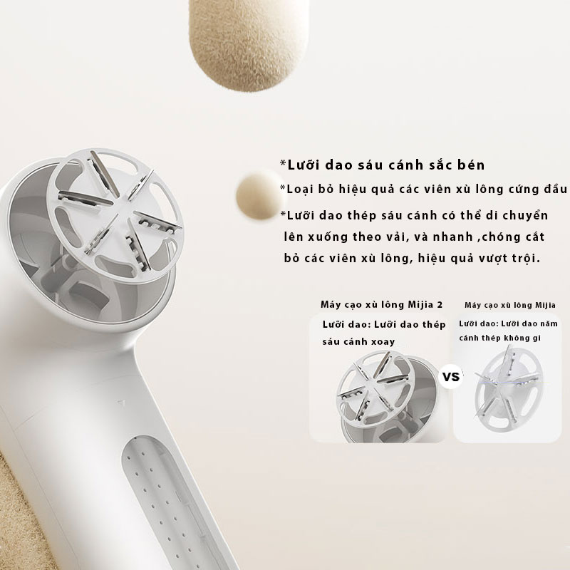 Mijia 2 được trang bị lưỡi dao thép không gỉ sáu cánh – nâng cấp rõ rệt so với phiên bản cũ ba cánh. Nhờ đó, máy có khả năng xoay nhanh và sắc bén hơn, dễ dàng xử lý các lớp xù lông cứng đầu trên mọi chất liệu vải.