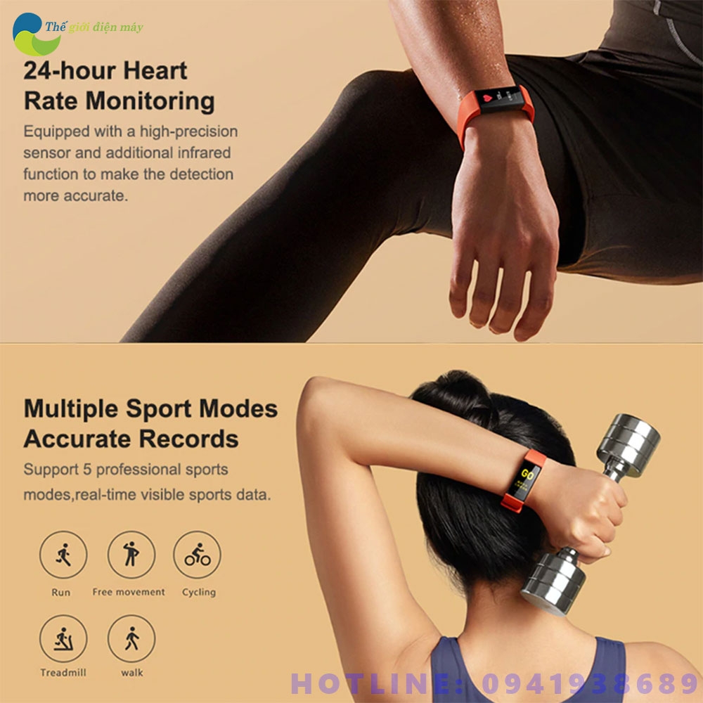 • 5 chế độ thể thao: chạy bộ ngoài trời, tập thể dục, đạp xe, máy chạy bộ, đi bộ nhanh