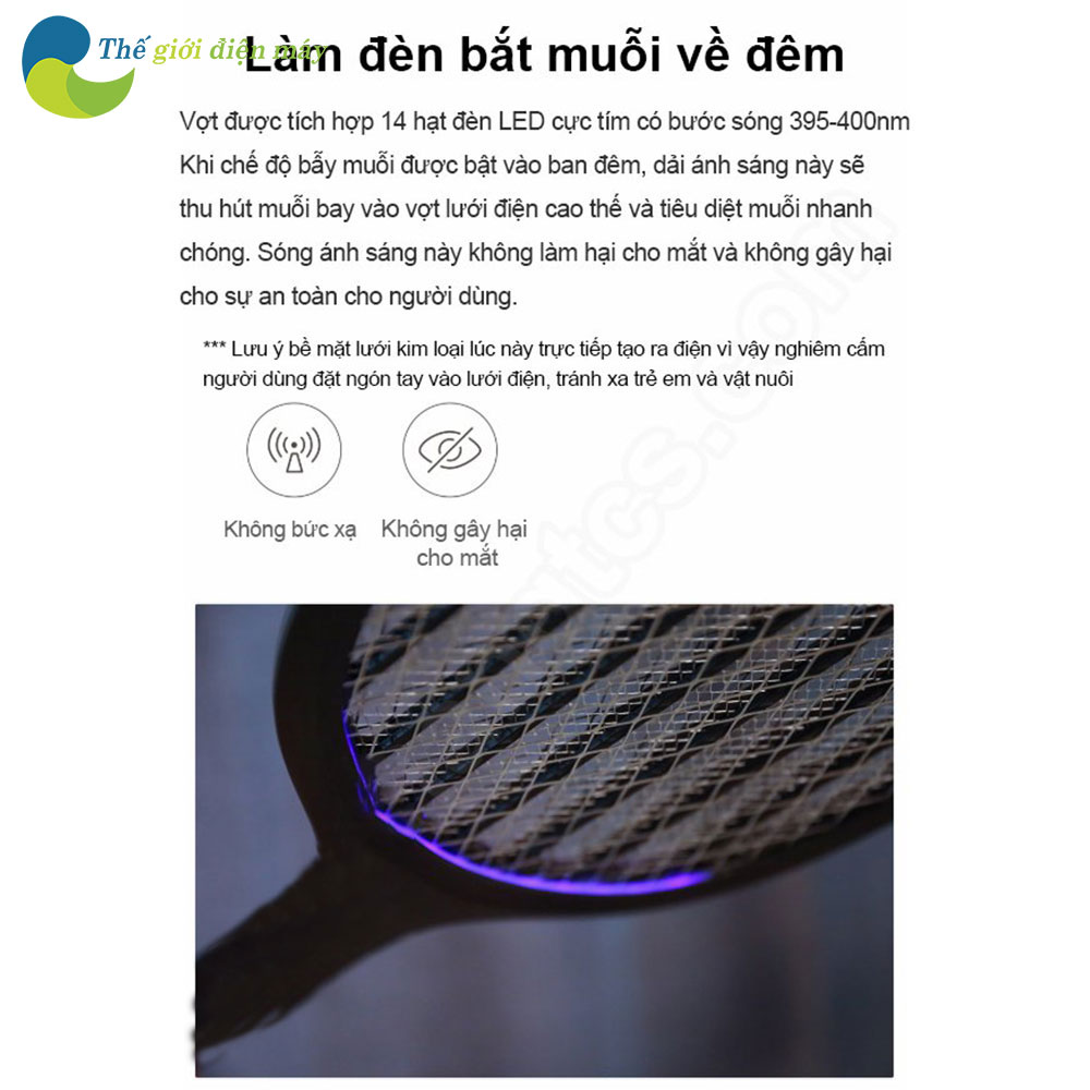 Bên cạnh đó vợt bắt muỗi P1 có thiết kế 3 lớp, lớp trên và lớp dưới có điện cực âm vì vậy người dùng sẽ không bị điện giật khi chạm vào bề mặt lưới. Lớp giữa là lưới điện cực hoạt động với điện áp thấp và trong phạm vi an toàn của con người.
