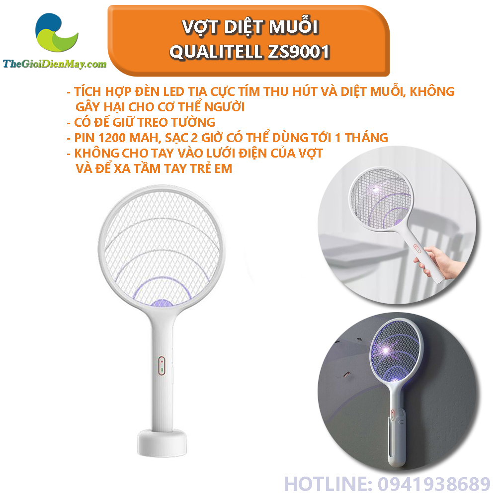 Vợt muỗi Qualitell ZS9001 với thiết kế linh hoạt, vừa là một chiếc vợt vừa có thể làm 1 chiếc đèn bắt muỗi có thể đặt ở bất cứ đâu trong nhà, giúp tiêu diệt muỗi nhanh chóng lại vừa an toàn cho người dùng khi sử dụng.