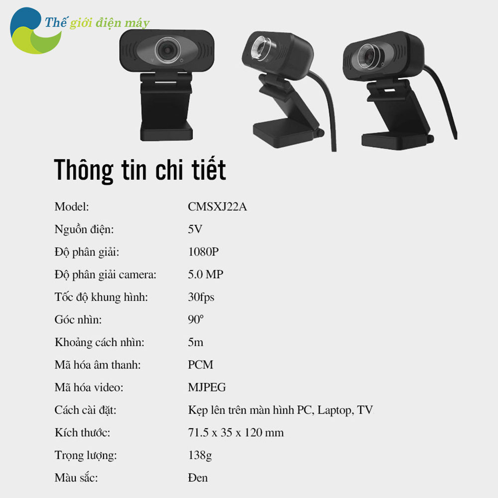 Webcam máy tính Xiaomi Imilab model CMSXJ22A chuyên dùng cho livestream, học và làm việc online, có độ phân giải full hd 1080p được tích hợp sẵn mic, dễ sử dụng...