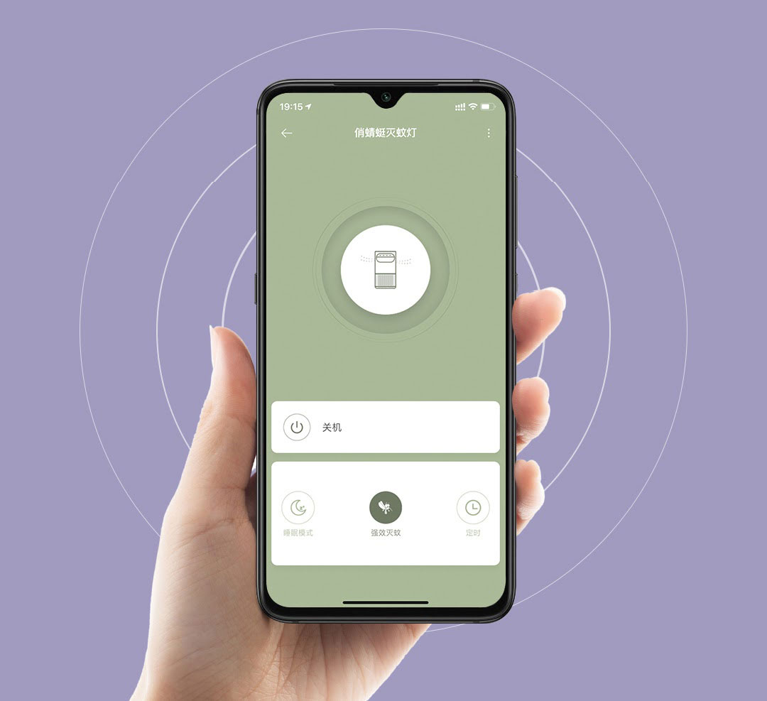 Các nút điều khiển được bố trí ngay trên thân máy, bằng cách chạm vào các nút bạn có thể tùy chỉnh đến 3 chức năng của đèn bắt muỗi, hẹn giờ,...Ngoài ra, chiếc đèn còn có thể được kết nối với app Mijia để điều khiển với các chức năng khá đầy đủ.